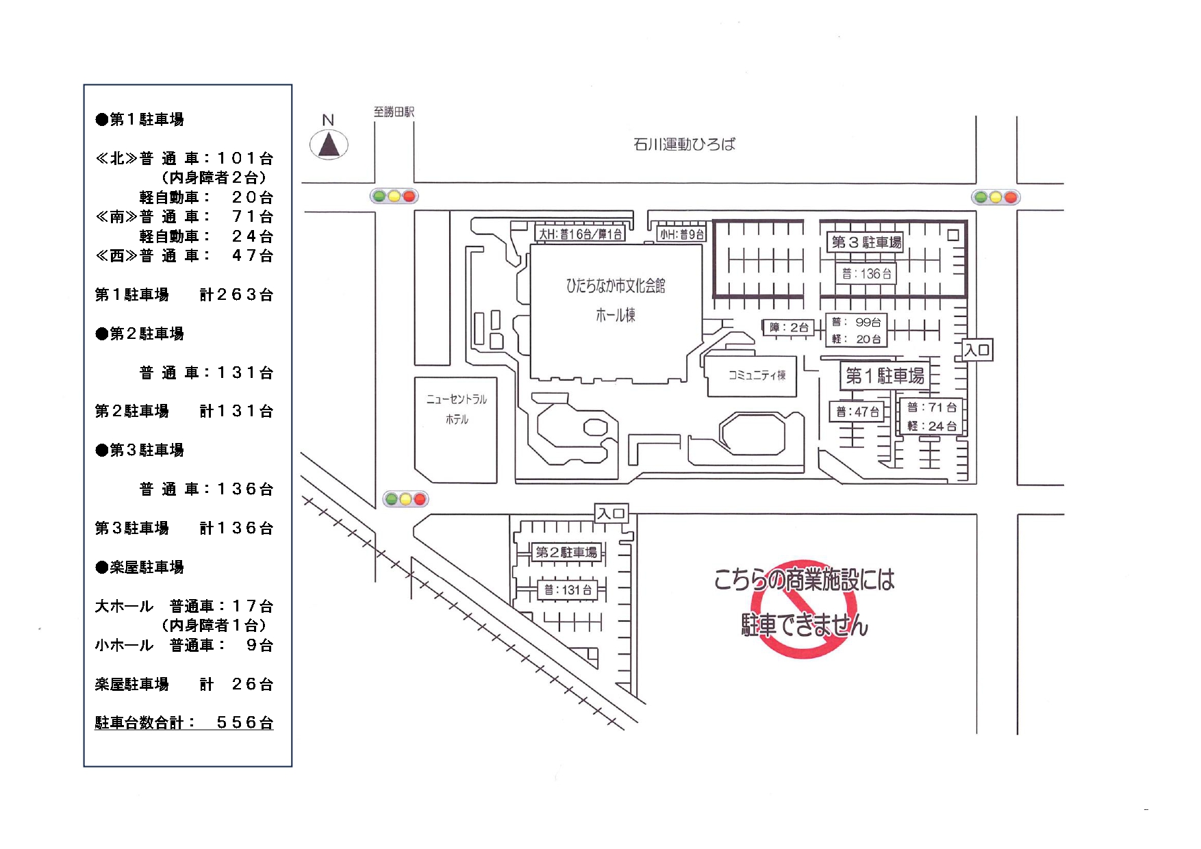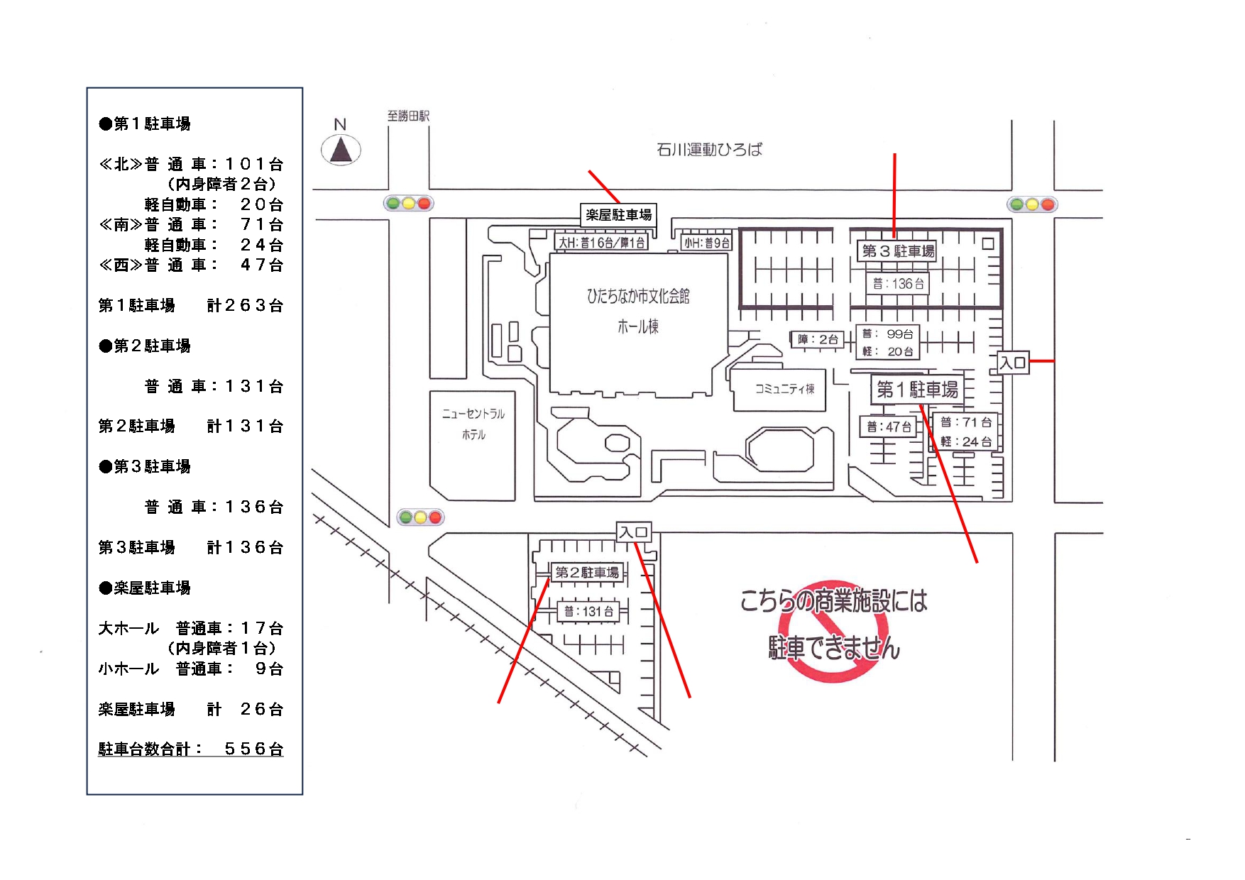 楽屋駐車場 計:26台※駐車台数 全合計:556台